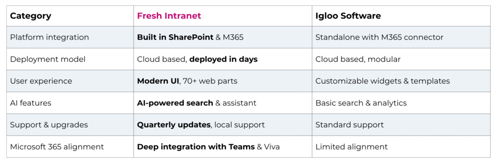 By replacing Igloo with Fresh, organizations gain a more unified, future-ready intranet that evolves with their Microsoft investment rather than working around it.