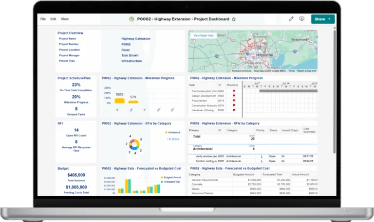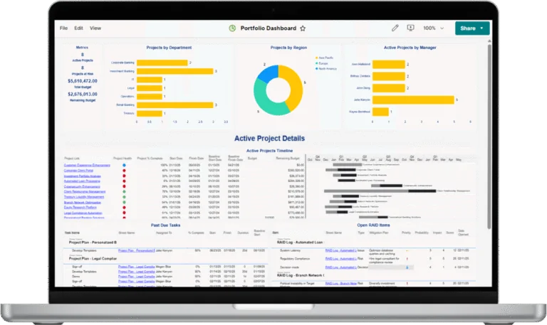 Centralize progress and effortlessly track tasks and budgets within Smartsheet.